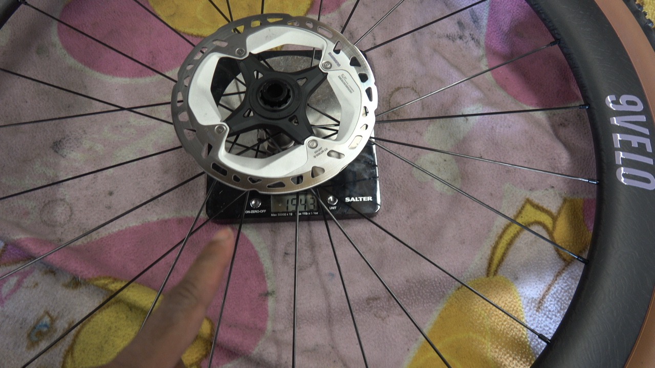 The set reviewed was measured at 797g for the rear wheel, 610g for the front wheel. Giving a combined weight of 1407g. The quoted weight was 1440g +/-30g.