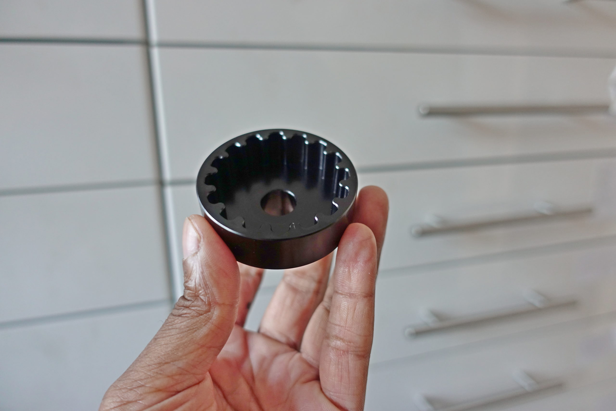 it’s a beautifully machined tool. However, I would have preferred a slot for a 3/8 torque wrench instead of the 32mm socket. Perhaps Hambini will upgrade this.