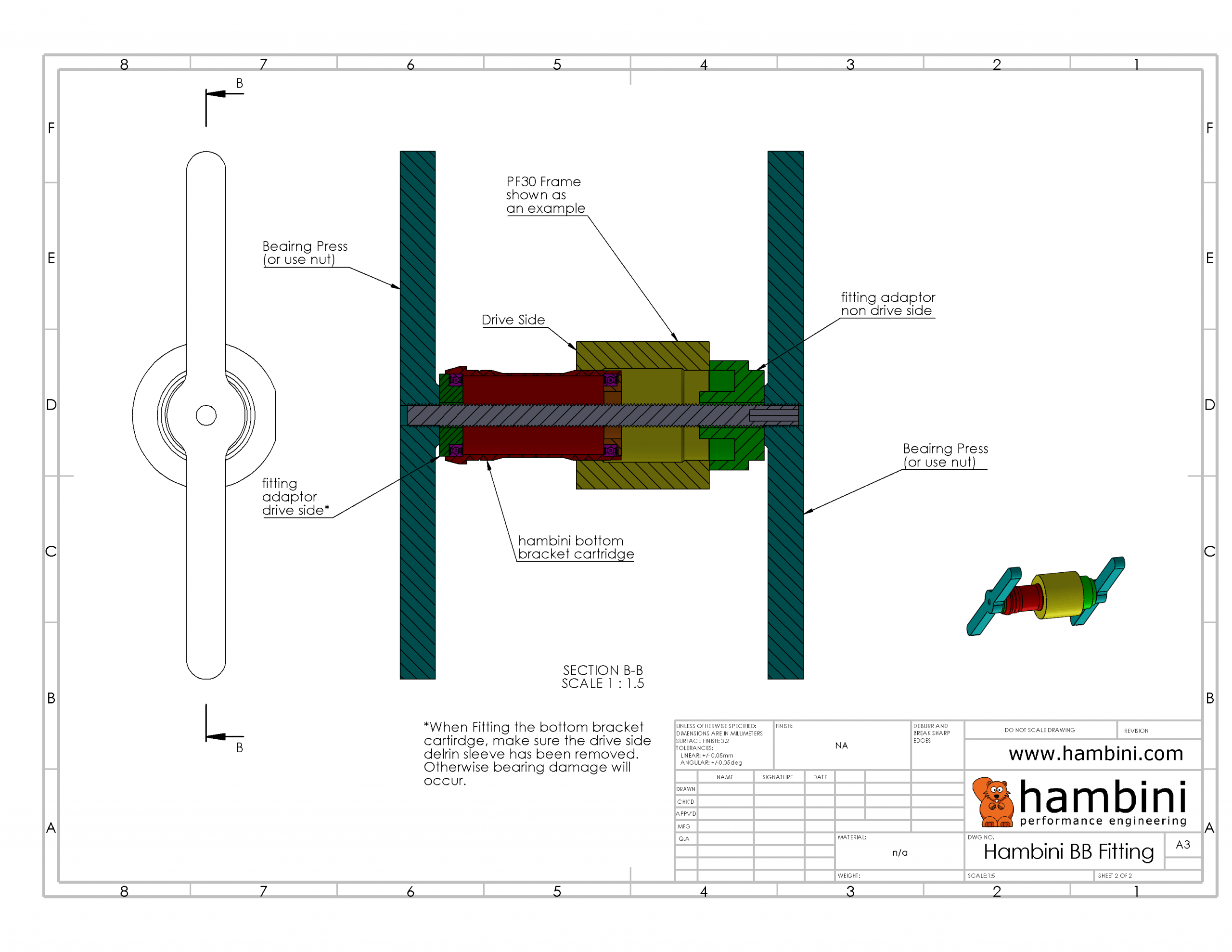 Hambini Bottom brackets are much stiffer than any other bottom bracket that is commonly available, please install with caution to avoid damaging your bike frame. Hambini will not be liable for any frame damage caused by the installation of a Hambini BB