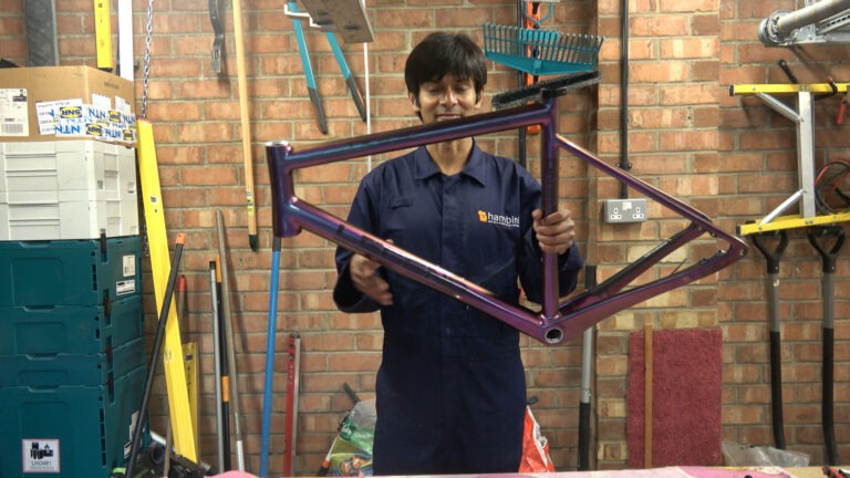 This bike frame was personally delivered to Hambini HQ by the purchaser who lived in Boston, MA, USA. He had flown to Italy to pick up his dream bike frame and then onto Manchester to get a Hambini bottom bracket custom fitted to his bike frame.