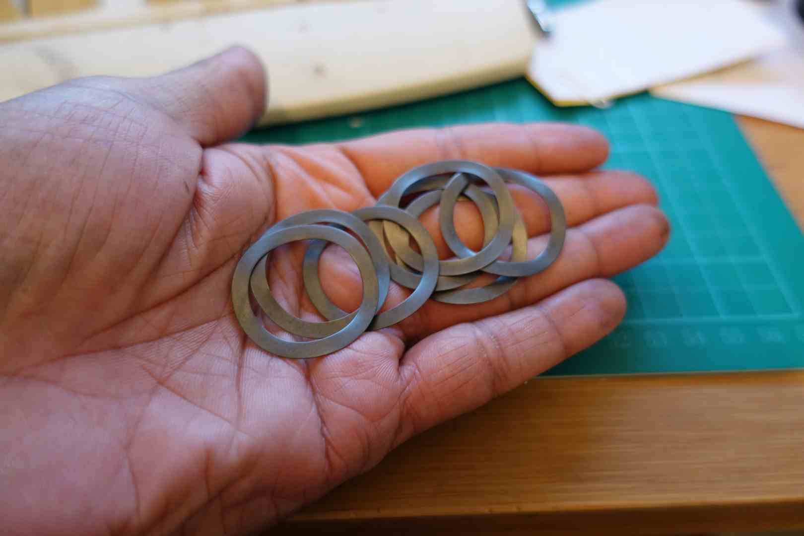 There is considerable variation in the spring constant of campagnolo wave washers. The Campagnolo Technical leader (Velotech, Graeme Freestone King) for the UK stated the variation was around +/-10%. When measured the range was found to be +/- 20%, a total range of 40%. It’s likely that many users will be relying on the safety pin to constrain the crank with this level of movement – although given the pin fretting highlighted above, they are probably unaware of it.