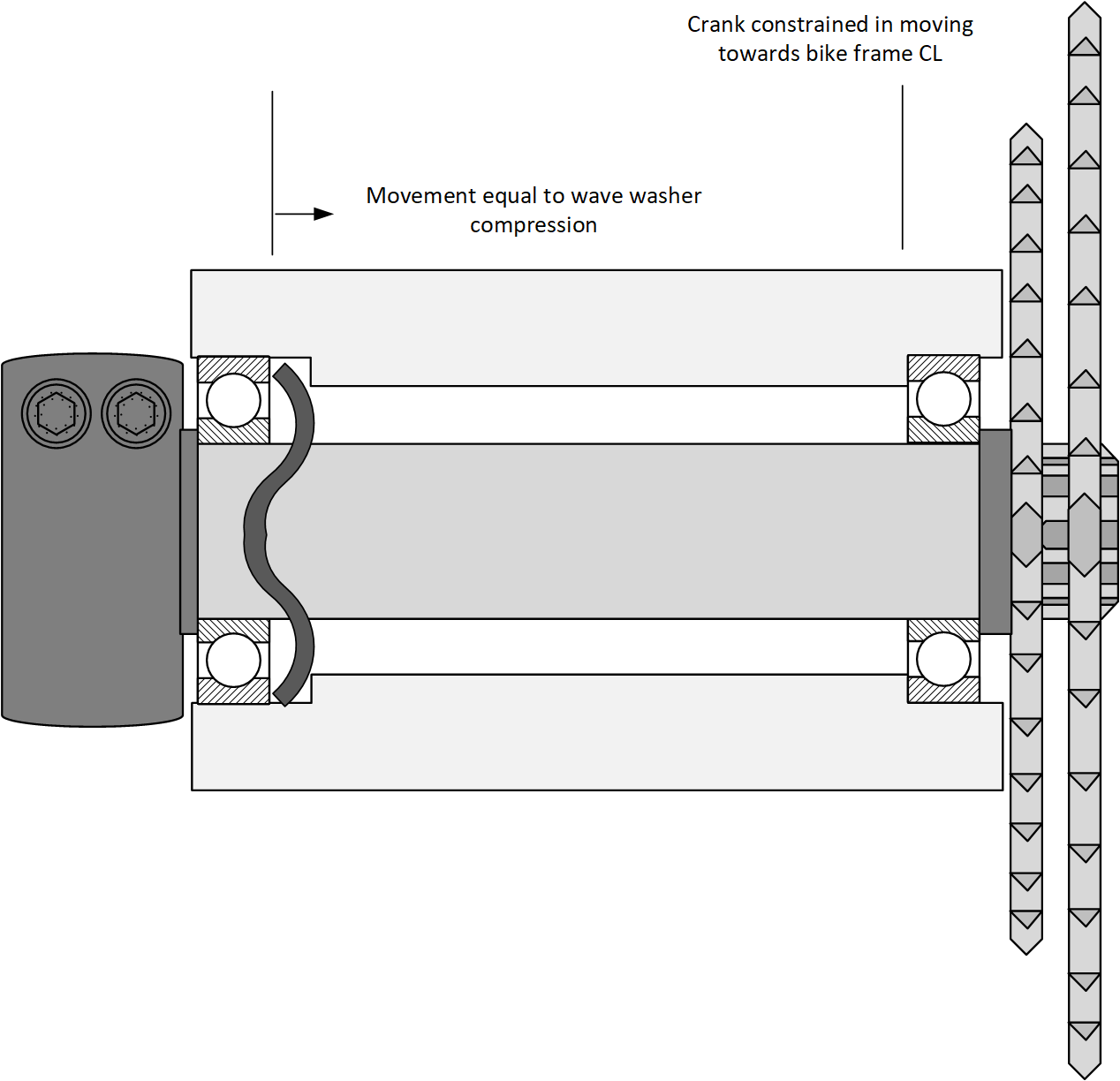 The preload is governed by the amount of axial force generated by the system. That load is derived from two factors, the first is the spring constant of the wave washer and the second is the amount of compression. The spring constant typically varies by +/-10% (this increases to 15% for wave washers), this is due to the material properties of spring steel being inconsistent. The amount of compression is directly related to the width of the bike frame. Campagnolo stipulate a maximum frame tolerance range of 1mm whilst the industry typically quotes 2mm. 2mm is a range that the current crop of cranksets from Rotor, Shimano and SRAM can comfortably deal with.