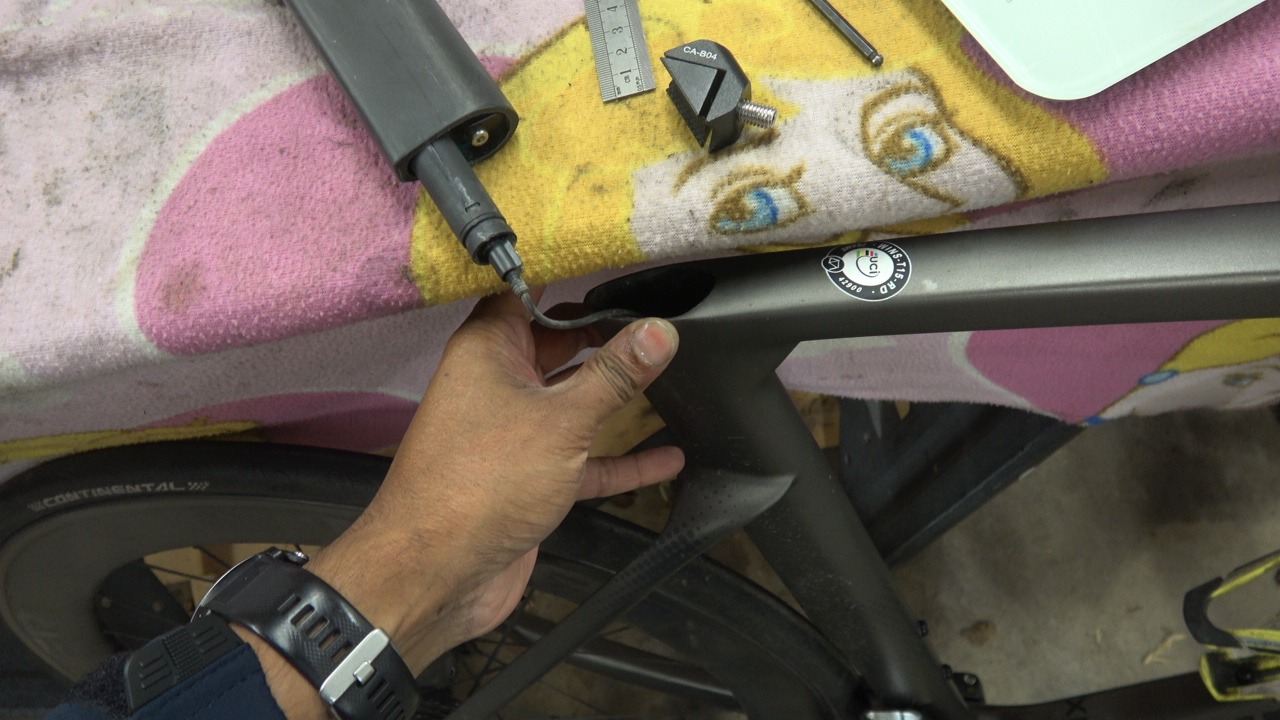 The bike was equipped with Winspace LUN Hyper 65’s. The frame has a comparatively large gap between the downtube and the back of the front wheel. The use of a deep wheel mitigates the aerodynamic loss associated with this. The loss is small but gaps (which cause pressure leakage) have bigger effects at lower speeds.